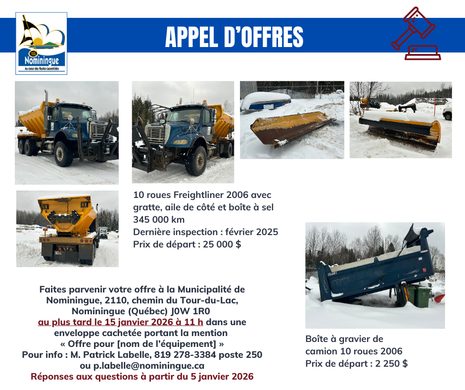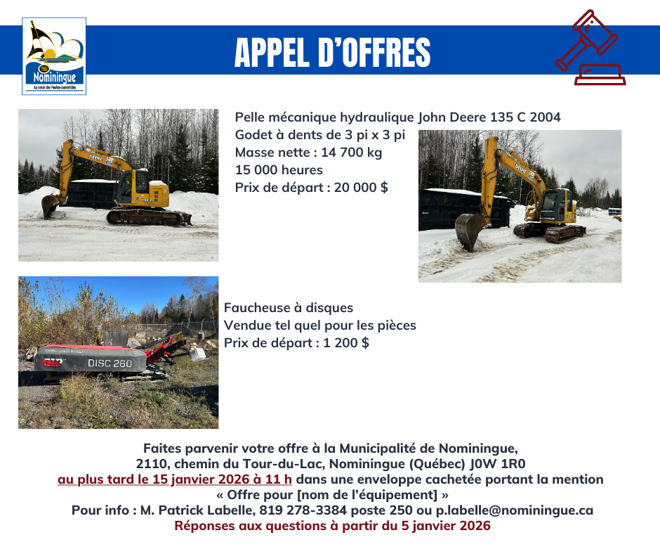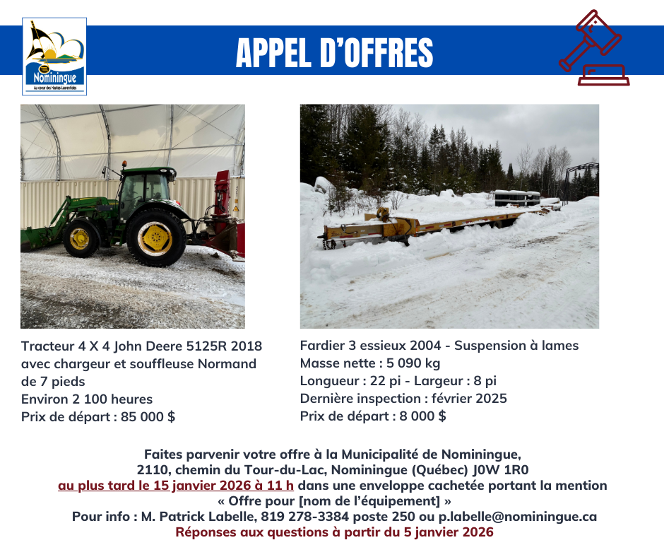 Appel d’offres – Équipements municipaux – prolongé jusqu’au 15 janvier 2026 11 h