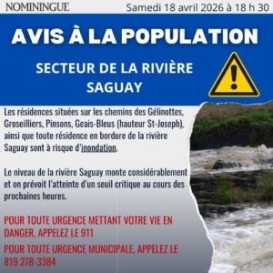 Crue printanière – Avis à la population – 18 avril 2026 18 h 30