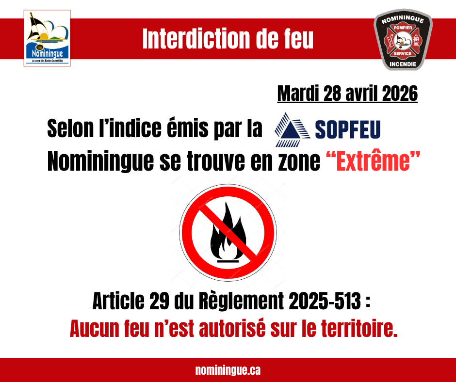 Indice de danger d’incendie « EXTRÊME »